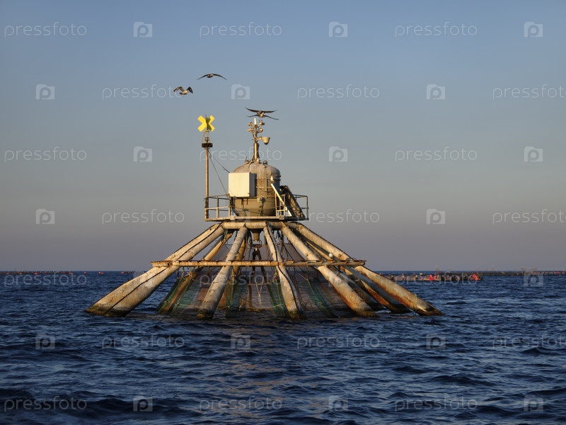 Италия, Сицилия, Средиземное море, аквакультура с сетями, Портопало-ди-Капо-Пассеро (провинция Сиракузы)