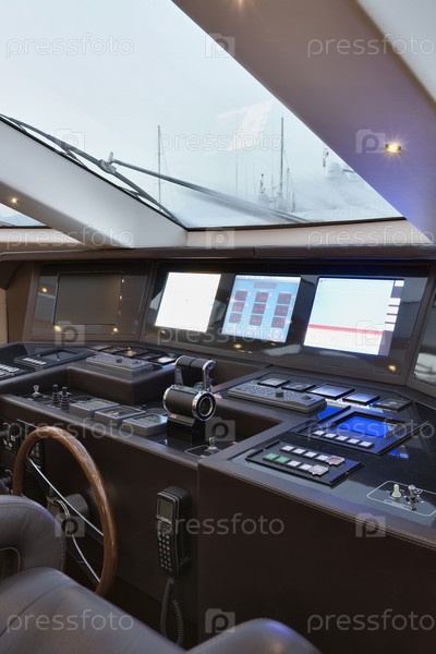 Италия, Тоскана, порт Виареджо, роскошная яхта Текномар 36 (36 метров), приборная панель и столовая