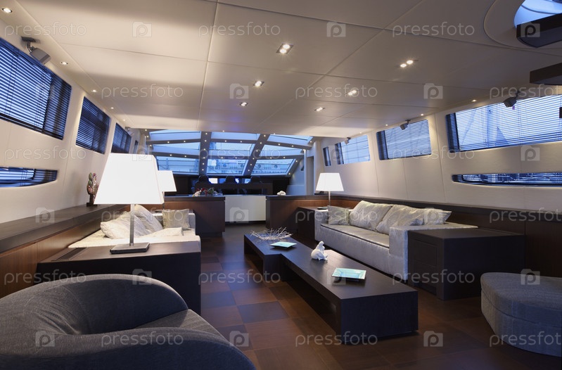 Италия, Тоскана, порт Виареджо, роскошная яхта Текномар 36 (36 метров), столовая