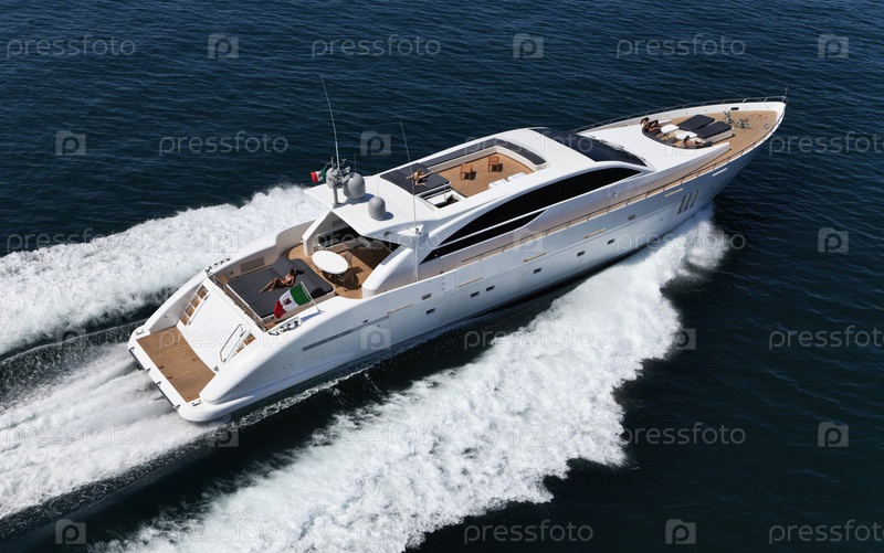 Италия, Тирренском море, побережье Виареджио, Тоскана, роскошная яхта Техномар 36 (36 метров), вид сверху