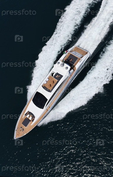 Италия, Тирренское море у побережья Виареджио, Тоскана, роскошная яхта Текномар 36 (36 метров), вид сверху
