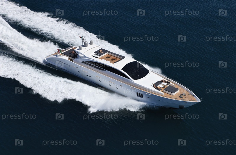 Италия, Тирренское море у побережья Виареджио, Тоскана, роскошная яхта Текномар 36 (36 метров), вид сверху