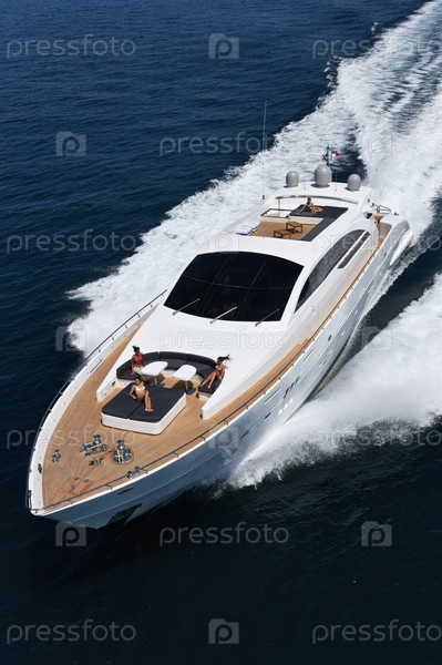 Италия, Тирренском море, побережье Виареджио, Тоскана, роскошная яхта Техномар 36 (36 метров), вид сверху