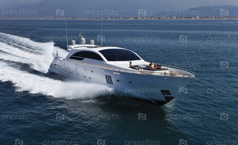 Италия, Тирренском море, побережье Виареджио, Тоскана, роскошная яхта Техномар 36 (36 метров), вид сверху