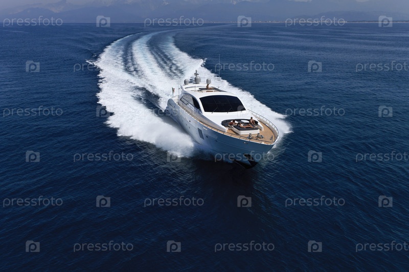 Италия, Тирренское море у побережья Виареджио, Тоскана, роскошная яхта Текномар 36 (36 метров), вид сверху