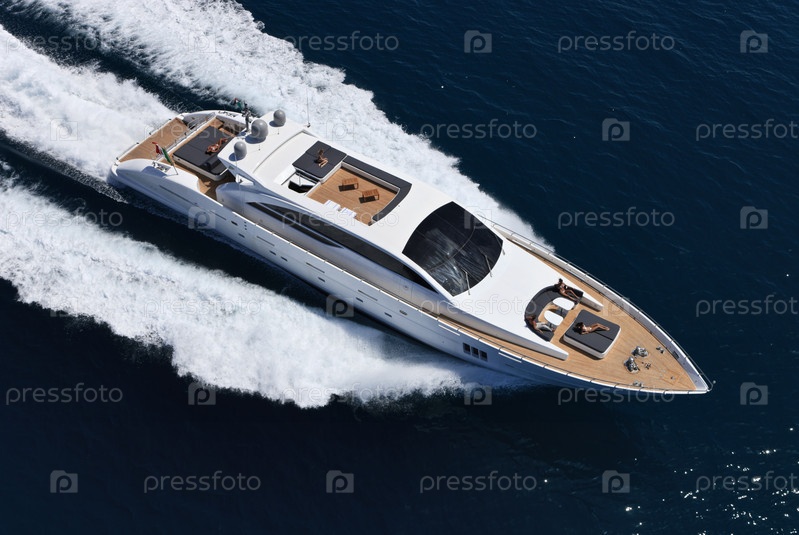Италия, Тирренское море у побережья Виареджио, Тоскана, роскошная яхта Текномар 36 (36 метров), вид сверху