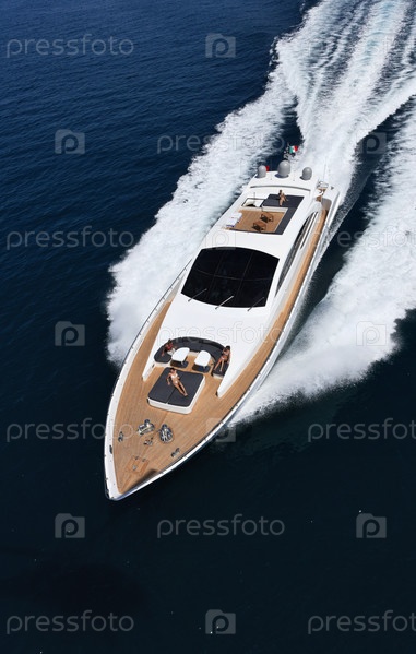 Италия, Тирренское море у побережья Виареджио, Тоскана, роскошная яхта Текномар 36 (36 метров), вид сверху