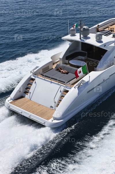 Италия, Тирренское море у побережья Виареджио, Тоскана, роскошная яхта Текномар 36 (36 метров), вид сверху