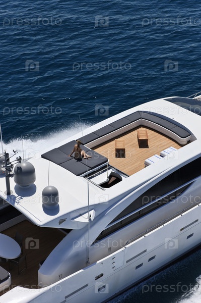 Италия, Тирренское море у побережья Виареджио, Тоскана, роскошная яхта Текномар 36 (36 метров), вид сверху