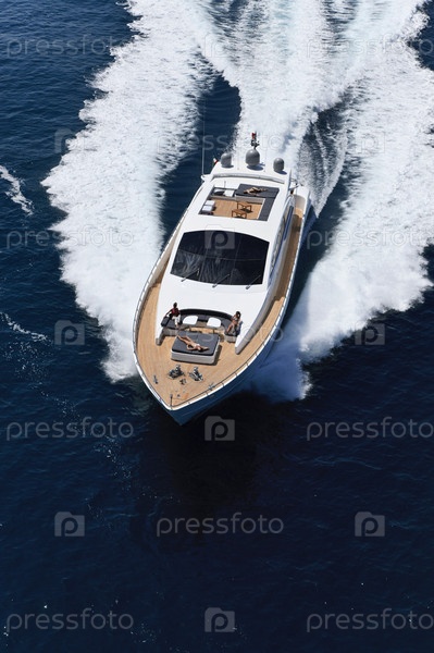 Италия, Тирренское море у побережья Виареджио, Тоскана, роскошная яхта Текномар 36 (36 метров), вид сверху