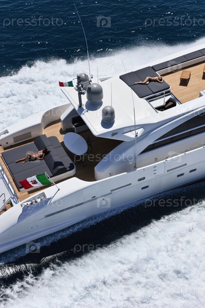 Италия, Тирренском море, побережье Виареджио, Тоскана, роскошная яхта Техномар 36 (36 метров), вид сверху