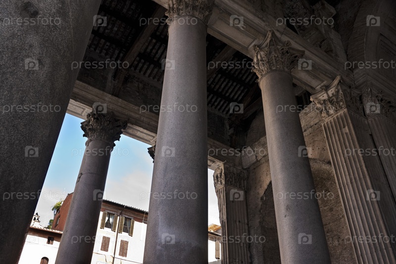 Италия, Лацио, Рим, колонны храма Пантеон на площади Пантеона