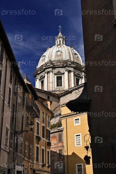 Италия, Лацио, Рим, старые здания и купол церкви вблизи площади Кампо дей Фьори