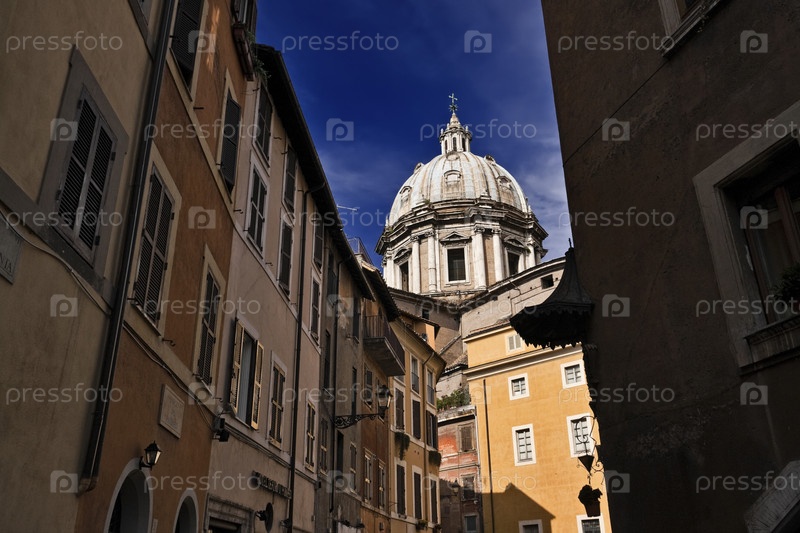 Италия, Лацио, Рим, старые здания и купол церкви вблизи площади Кампо дей Фьори
