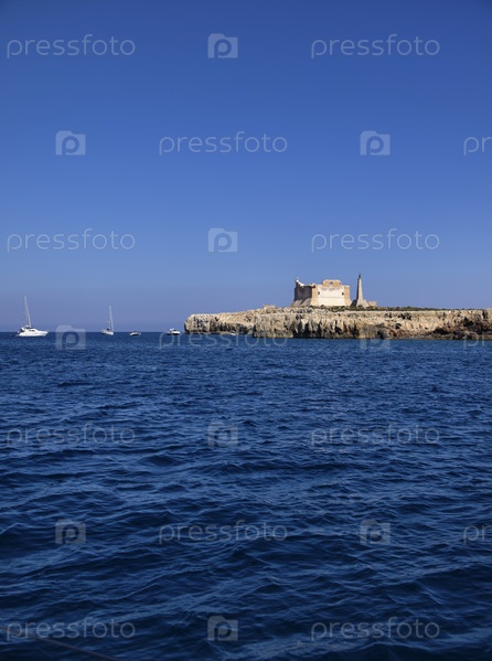 Италия, Сицилия, Портопало ди Капо-Пассеро (провинция Сиракуза), вид на остров Капо-Пассеро и его древний испанский Форт