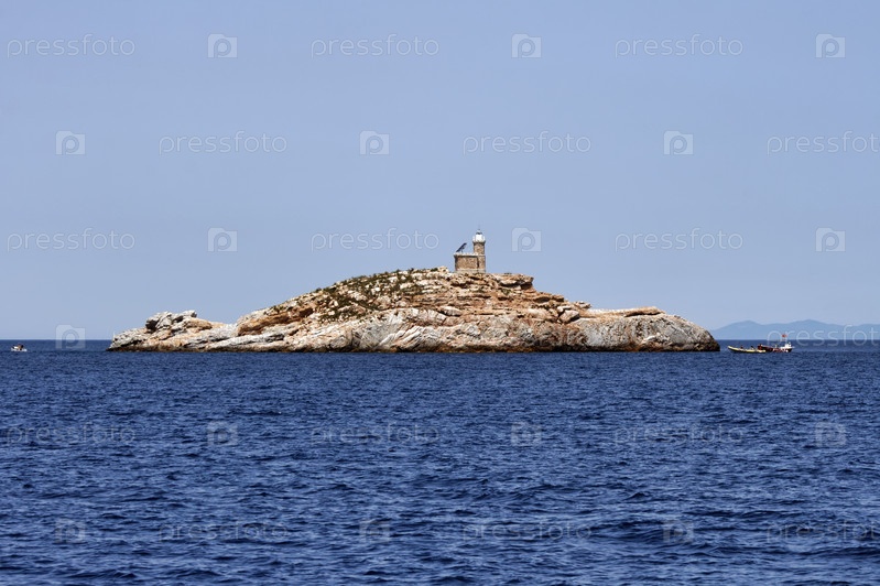 Италия, Тоскана, остров Эльба, изолированная скала с маяком недалеко от Портоферрайо