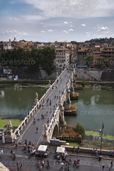 Италия, Лацио, Рим. Вид на замок Сант-Анджело и мост через реку Тибр