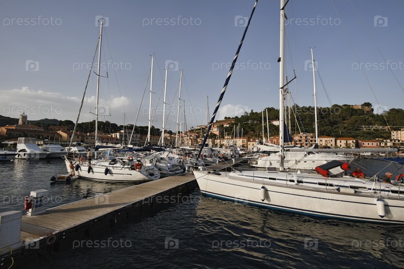 Италия, Тоскана, остров Эльба, Порто Адзурро. Вид на порт на закате