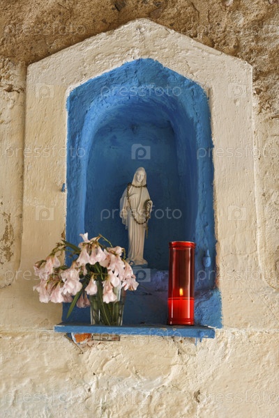 Италия, Тоскана, остров Эльба, город Порто-Веккьо. Религиозное сооружение со статуей Мадонны на одной из улиц центра