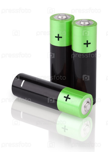 Большой план три батареи типа AA на белом