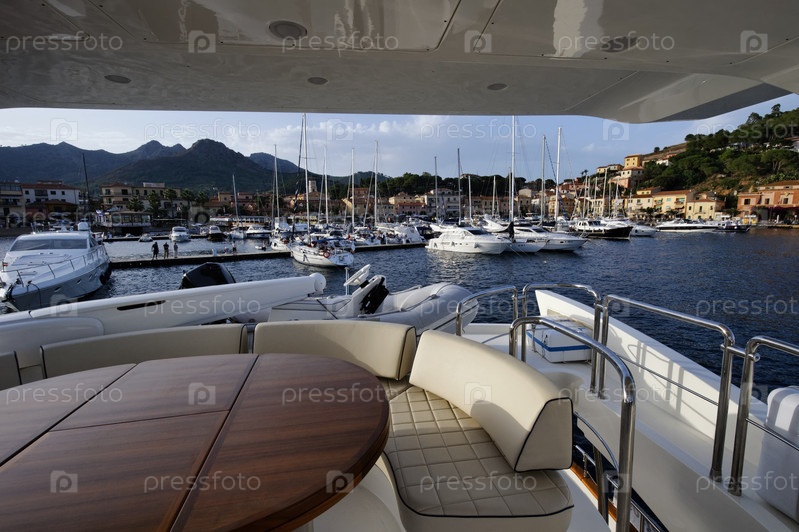 Италия, Тоскана, остров Эльба, порт Порто Адзурро с роскошной яхтой Азимут 75'