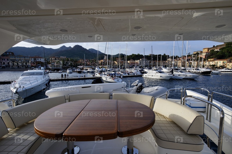 Италия, Тоскана, остров Эльба, порт Порто Адзурро с роскошной яхтой Азимут 75'
