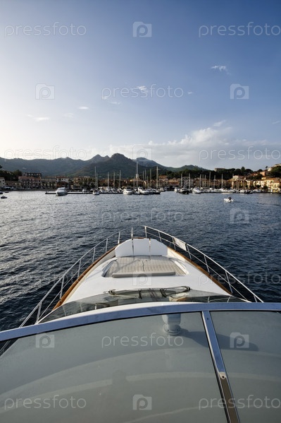 Италия, Тоскана, остров Эльба, порт Порто Адзурро с роскошной яхтой Азимут 75'