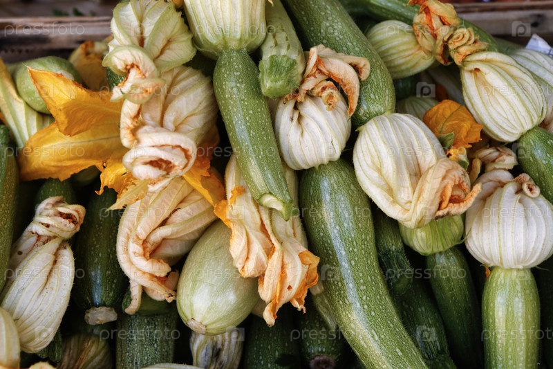 Италия, остров Эльба, кабачки на местном рынке