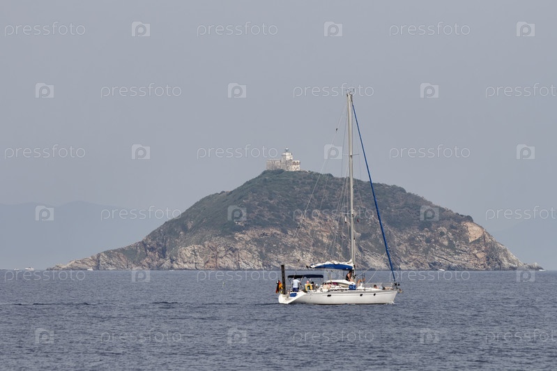 Италия, Тоскана, остров Эльба, небольшая скала с маяком