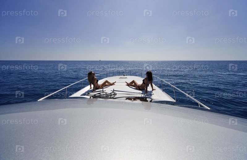 Италия, Лацио, Тирренское море, роскошная яхта Alfamarine 60' у берегов Фьюмичино (Рим)