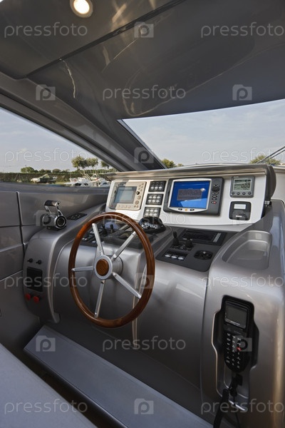 Италия, Лацио, Тирренское море, побережье Рима, Фьюмичино. роскошная яхта Alfamarine 60', кабина управления