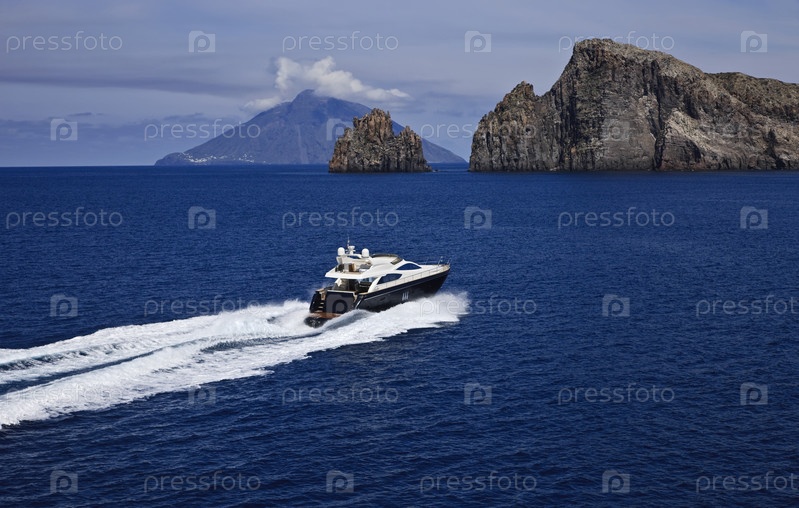 Италия, Сицилия, остров Панарея, роскошная яхта, аэрофотоснимок, Абакус 52', верфь Абакус