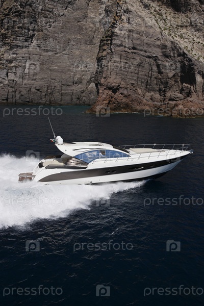 Италия, остров Панарея, Тирренское море, аэрофотоснимок роскошной яхты 55'