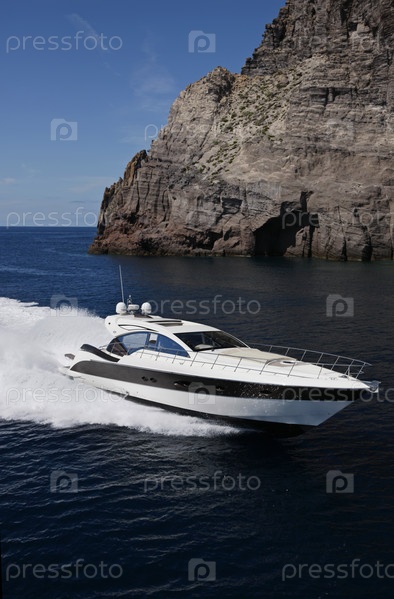 Италия, остров Панарея, Тирренское море, аэрофотоснимок роскошной яхты 55'