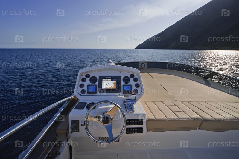 Италия, Сицилия, остров Стромболи, роскошная яхта Абакус 52', приборная панель на мостике, верфи Абакус
