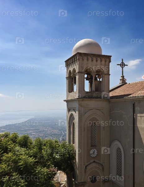 Италия, Сицилия, Кастельмола (Таормина), колокольня собора и восточное побережье Сицилии