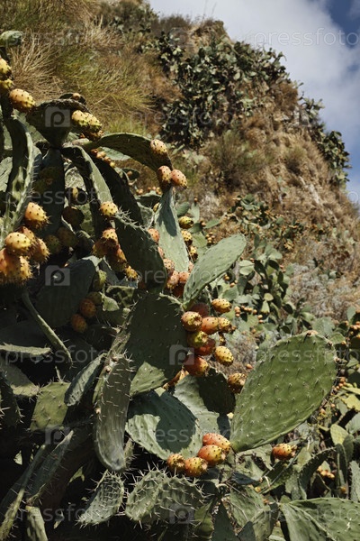 Италия, Сицилия, Кастельмола (Таормина), колючие груши в сицилийской загородной местности
