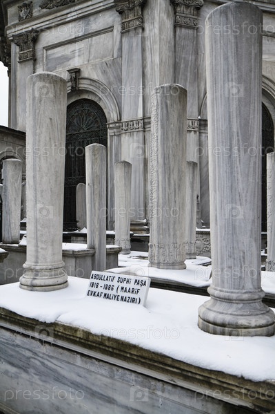 Турция, Стамбул, старые турецкие каменные могилы, покрытые снегом