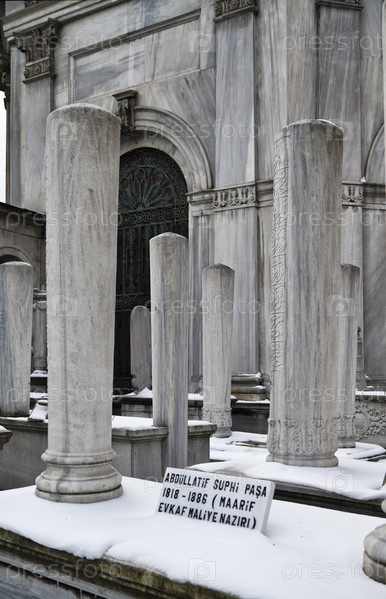 Турция, Стамбул, старые турецкие каменные могилы, покрытые снегом
