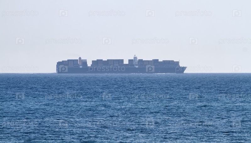 Италия, Сицилия, Средиземное море, грузовое судно с контейнерами