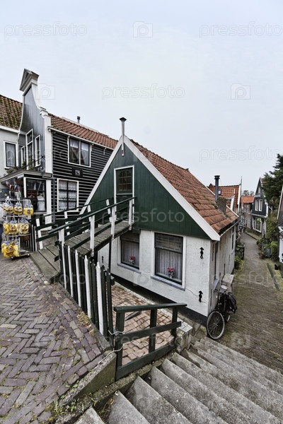 Голландия, деревни Волендам (Амстердам), типичные старые голландские дома ниже уровня моря