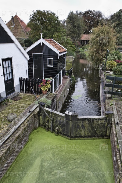 Голландия, деревня Эдам (Амстердам), типичный голландский каменный дом и канал