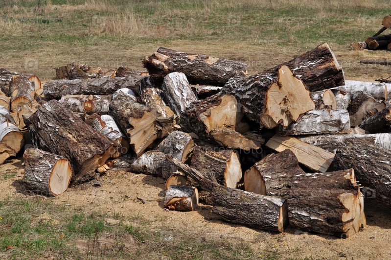 Березовые дрова, сваленные в кучу