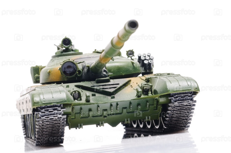 Модель российского танка на белом фоне