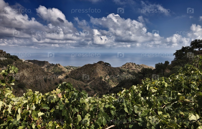 Италия, Сицилия, Кастельмола (Таормина). Скалистое побережье Сицилии и Ионическое море