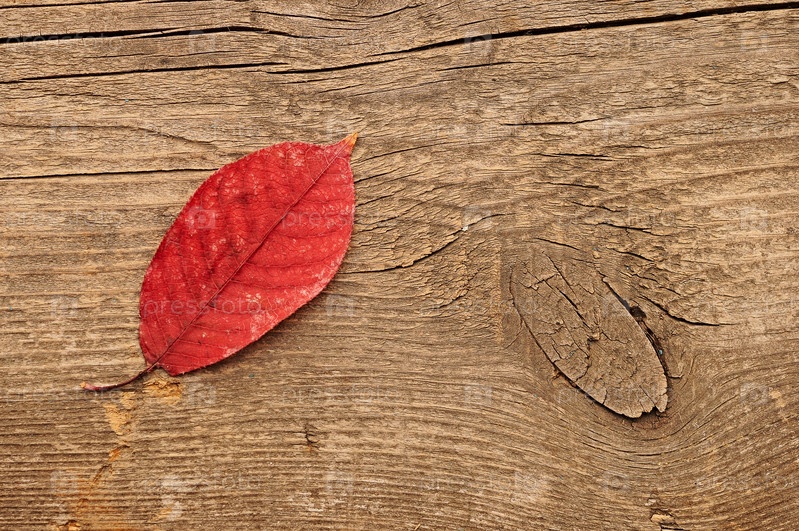 Один осенний лист на деревянном столе