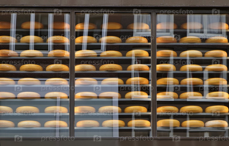 Голландия, Амстердам. Голландский сыр для продажи в местном магазине