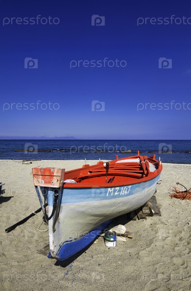 Италия, Сицилия, Тиндари. Рыбацкие лодки на пляже