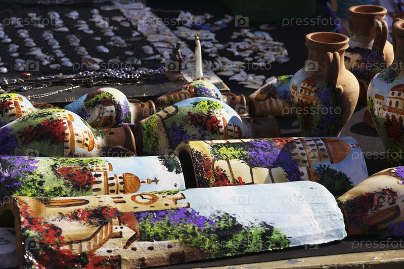 Италия, Сицилия, Тиндари, разрисованные вручную сицилийские вазы для продажи в магазине
