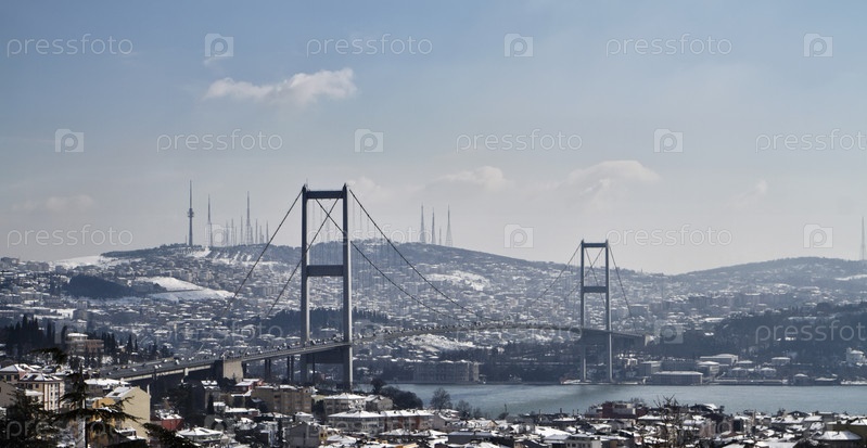 Турция, Стамбул. Панорамный вид города, пролив Босфор и Босфорский мост